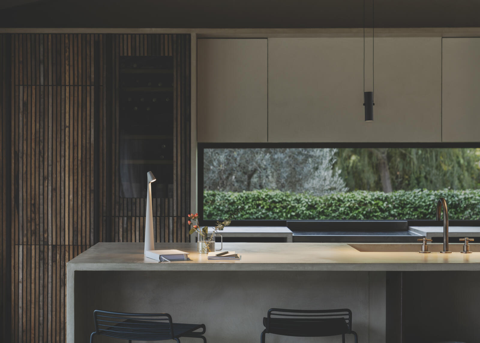 The Africa table lamp is defined by a slender conical stem leading to a pure and elegant head. The bolt-down version is fixed to a point and designed to integrate into the surrounding architecture, making it ideal for contract spaces such as hotels or libraries, serving as reading lamps on communal tables, for example.
