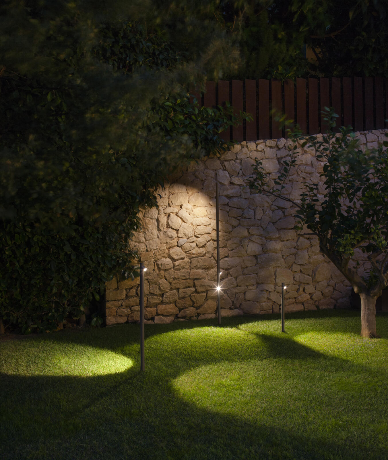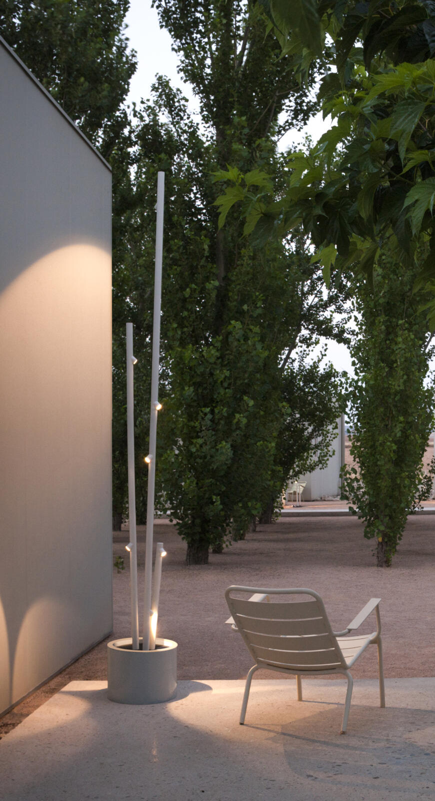 Bamboo is a recessed outdoor lamp with two arms. Available in three finishes – khaki, stainless steel and off-white – that make it possible to camouflage and integrate it into the landscape, with the added surprise that it produces light. Designed by Antoni Arola & Enric Rodríguez.