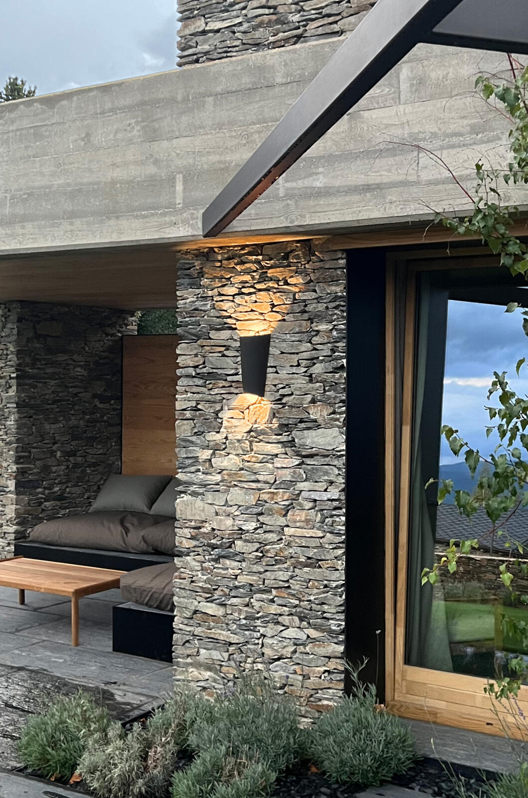 Break Plus outdoor wall lamp. It resembles a tile or a brick, designed to be integrated in the architecture of all types of space, creating a sense of spatial depth. Its light is reflected in two directions.