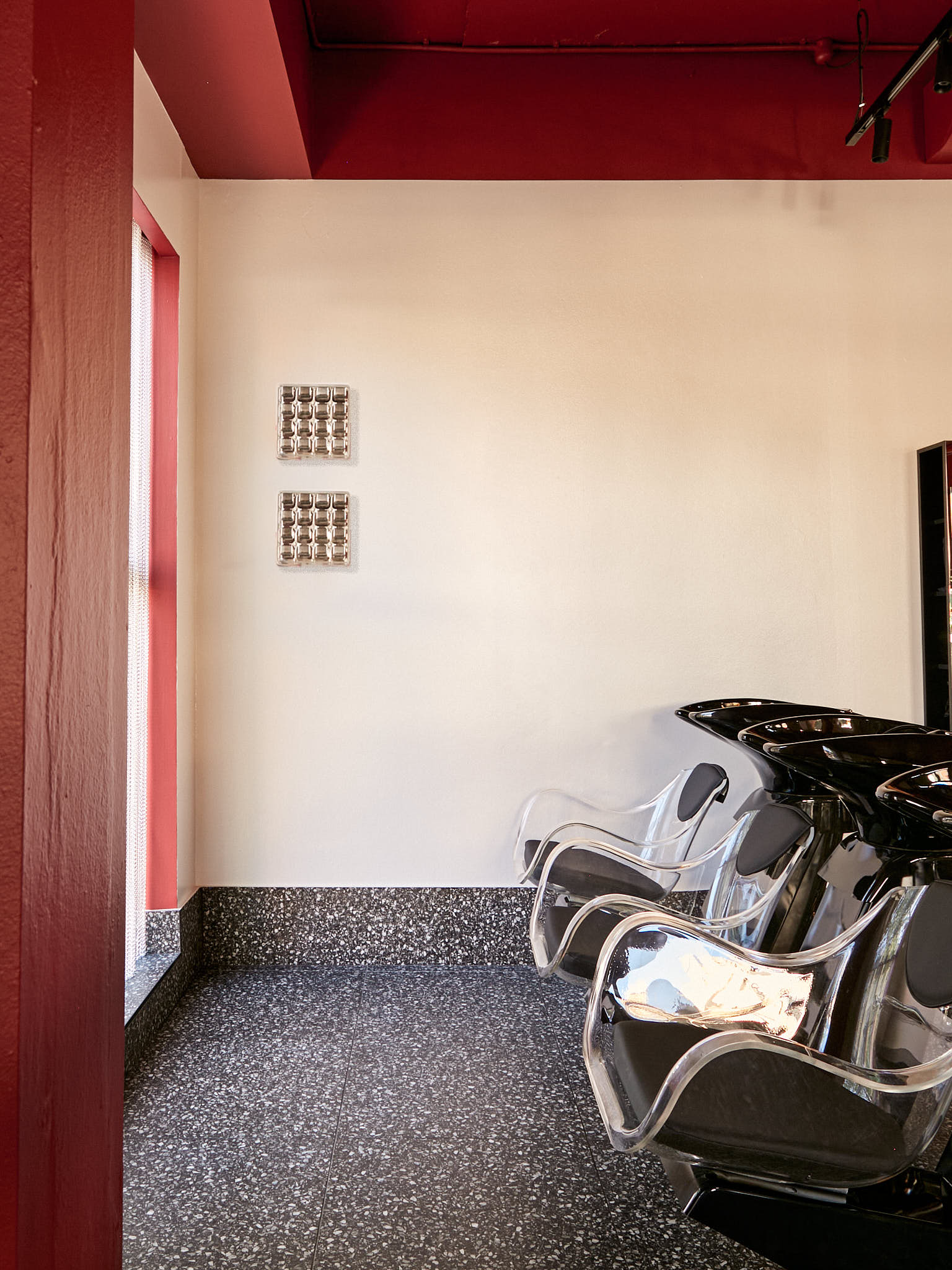 White matt base, red plate