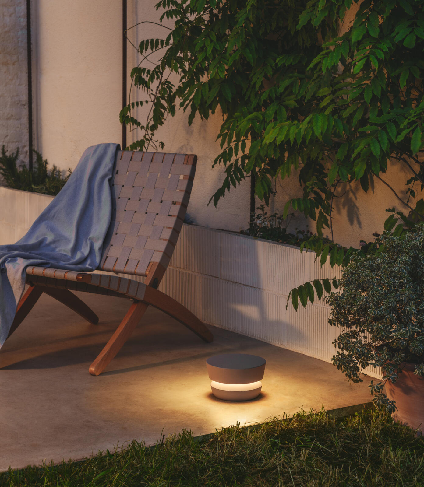Dots is an outdoor beacon easily integrated in any garden or patio thanks to its finishes in natural tones. It can be installed individually or in clusters, and radiates a gentle circle of ambient light at 360º, like a bright crown.