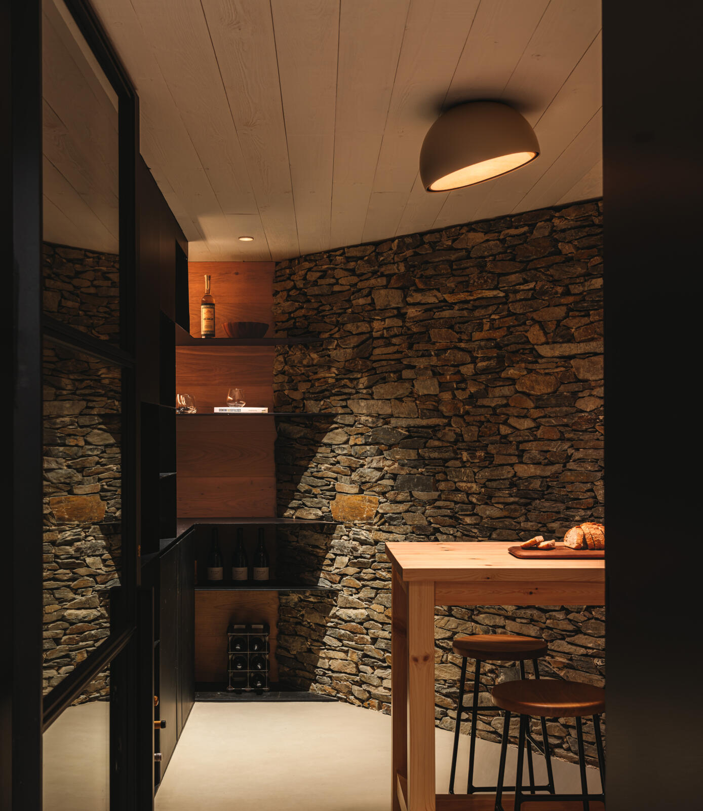 Duo is a ceiling light with surface installation where the natural warm appearance of the oak wood on the inside is combined with the technical refinement of the aluminium metal wrap on the outside.