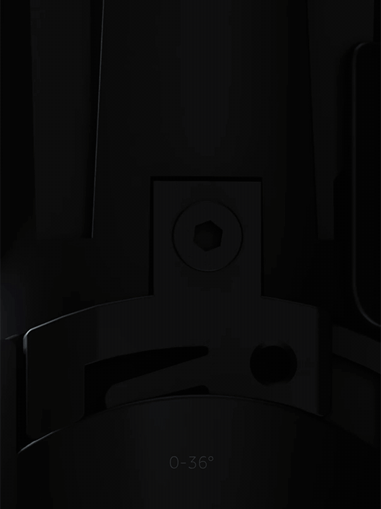 Adjustability on both axes (horizontal 0-36°, vertical 365°)