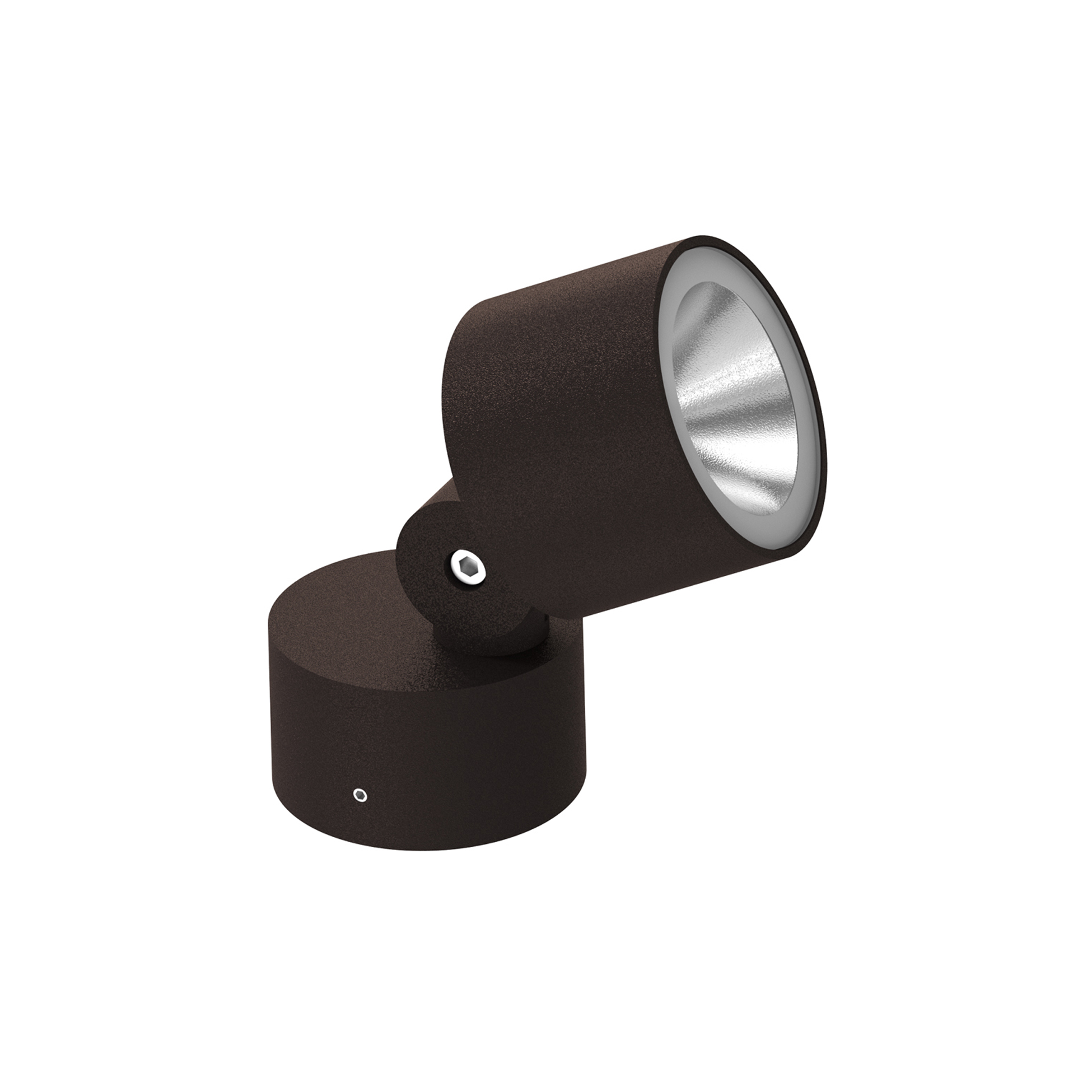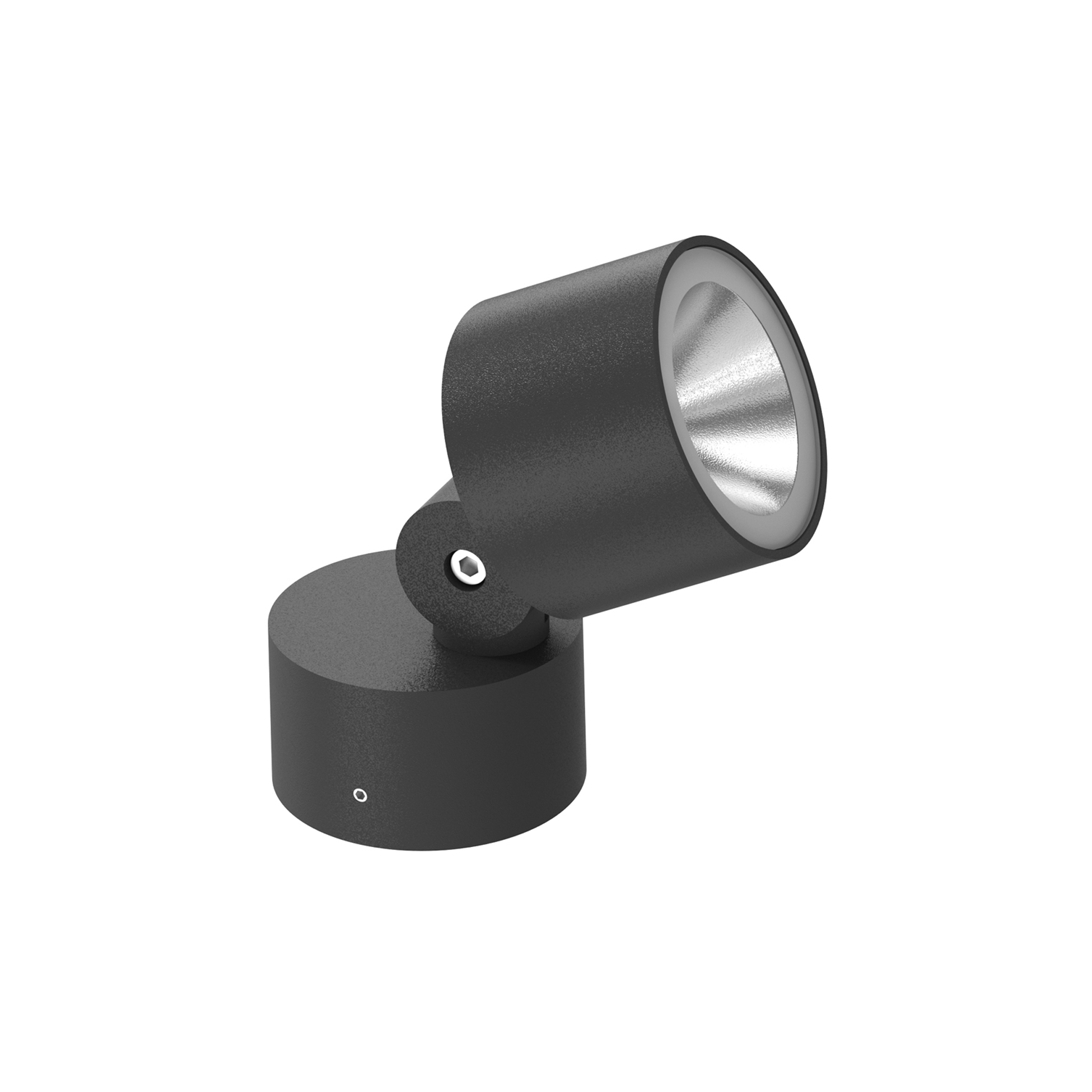 Adjustable projector for installation on ceiling, wall or floor.Configuration: die-cast aluminium structure, EN AB-47100 alloy (low copper content) and AISI 316L fixing plate. Glass diffuser: extra clear with silkscreen border, fixed to the aluminium through a robotic gluing system. The wiring unit and the emitting unit are connected by an adjustable junction.Double layer coating for high resistance to corrosion: the aluminium components are painted with a double coat using powders which are compliant with QUALICOAT standards: a first layer of epoxy powder (with excellent chemical and mechanical resistance) and a second finishing layer of polyester powder (resistant to UV rays and atmospheric agents). The entire painting process of the aluminium fitting starts from components which have been sand-blasted in advance to make the surface more porous and increase the adherence of the paint. Ares effects alkaline and acid washing to clean the surfaces completely, then rinses with demineralised water to remove any residue particles, subsequently a chemical conversion treatment is done to protect against rusting.Protection rating: IP65 In compliance with EN60598-1 standards Class of insulation: I Installation: the luminaire is for direct connection to 220-230V with a LED module set to work directly connected to the mains. The luminaire is equipped with an AISI316L stainless steel fixing plate for installation on surface and IP68 connector (6<Ø<8mm cable). Ground spike available on request.During the installation and the maintenance of the fixtures it is important to be careful and avoid damages on the paint coating.Damages on the coating exposed to outdoor conditions or water, could cause corrosion.Chemical substances affect the anticorrosion covering protection.