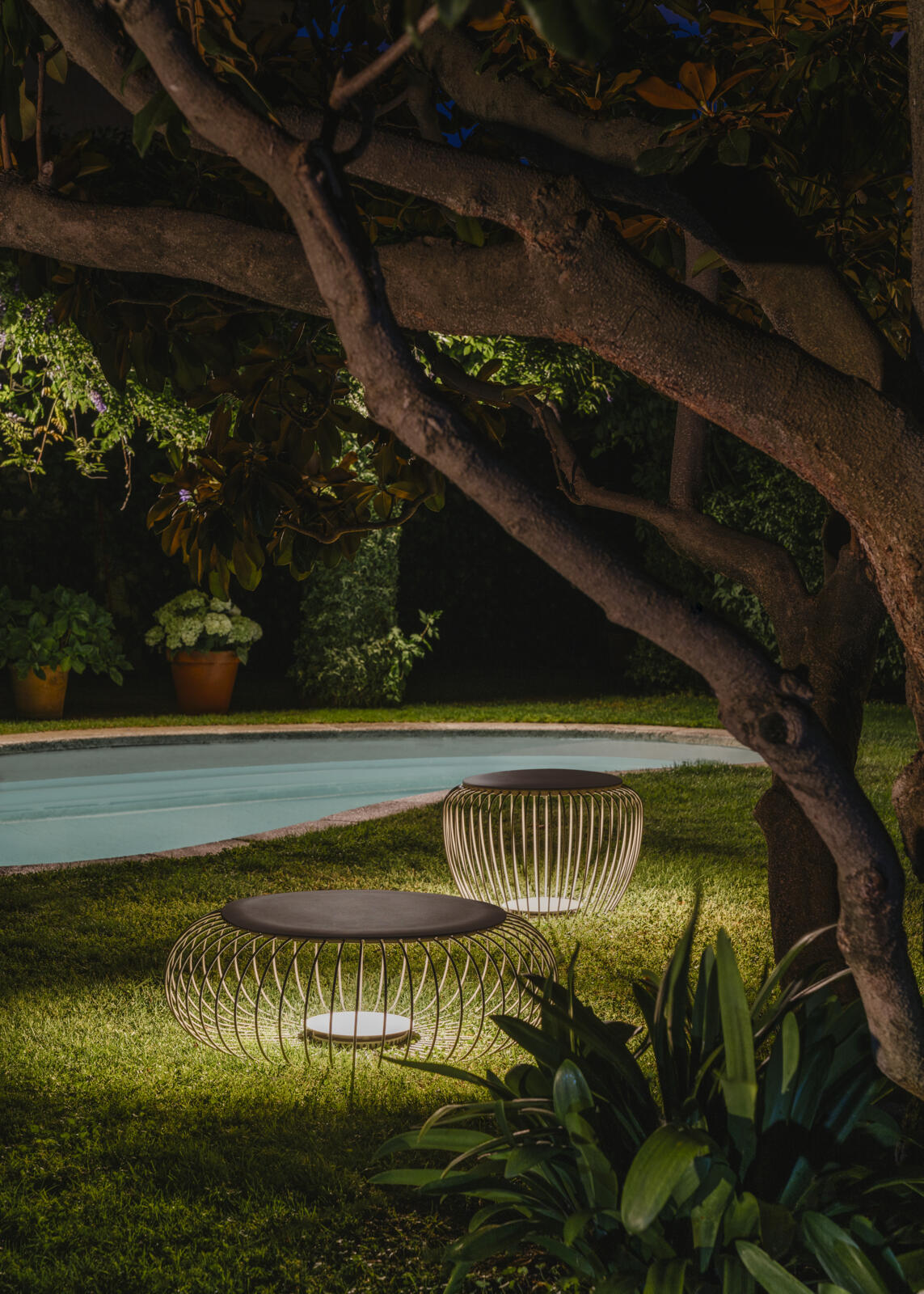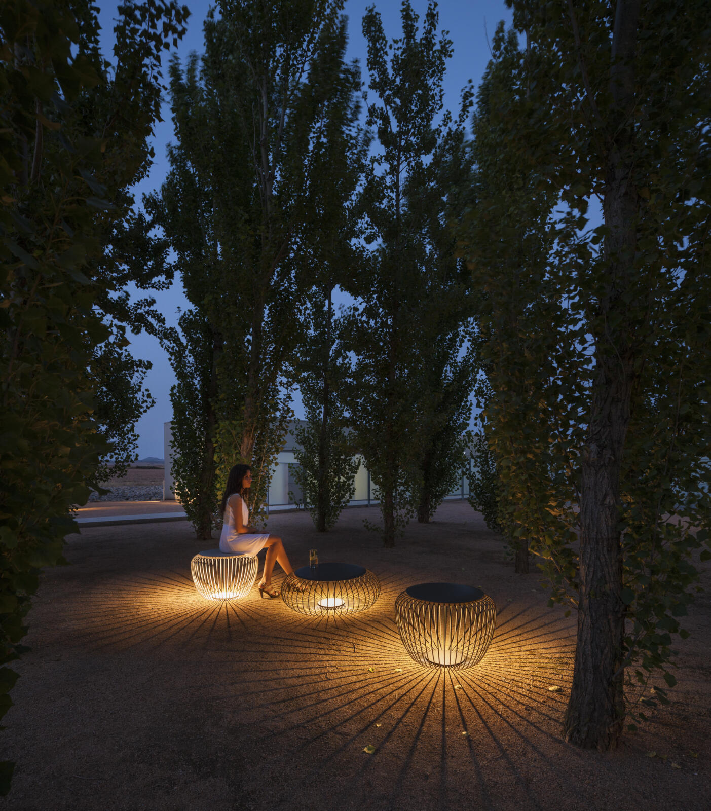 Meridiano is an outdoor lamp that boasts different functions, where matter and light are integrated in a single body. Meridiano can be used as outdoor seating by day and an outdoor lamp at night. Designed by Jordi Vilardell & Meritxell Vidal. Available in three colours: khaki, green and off-white.