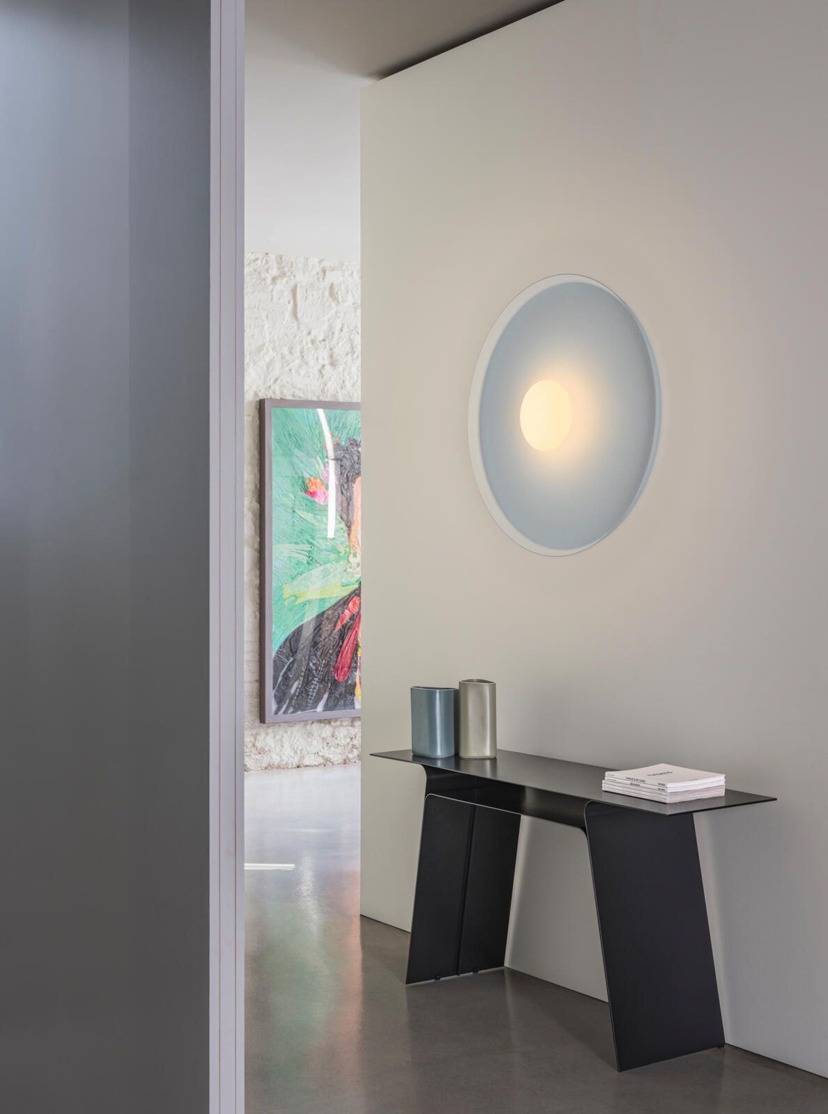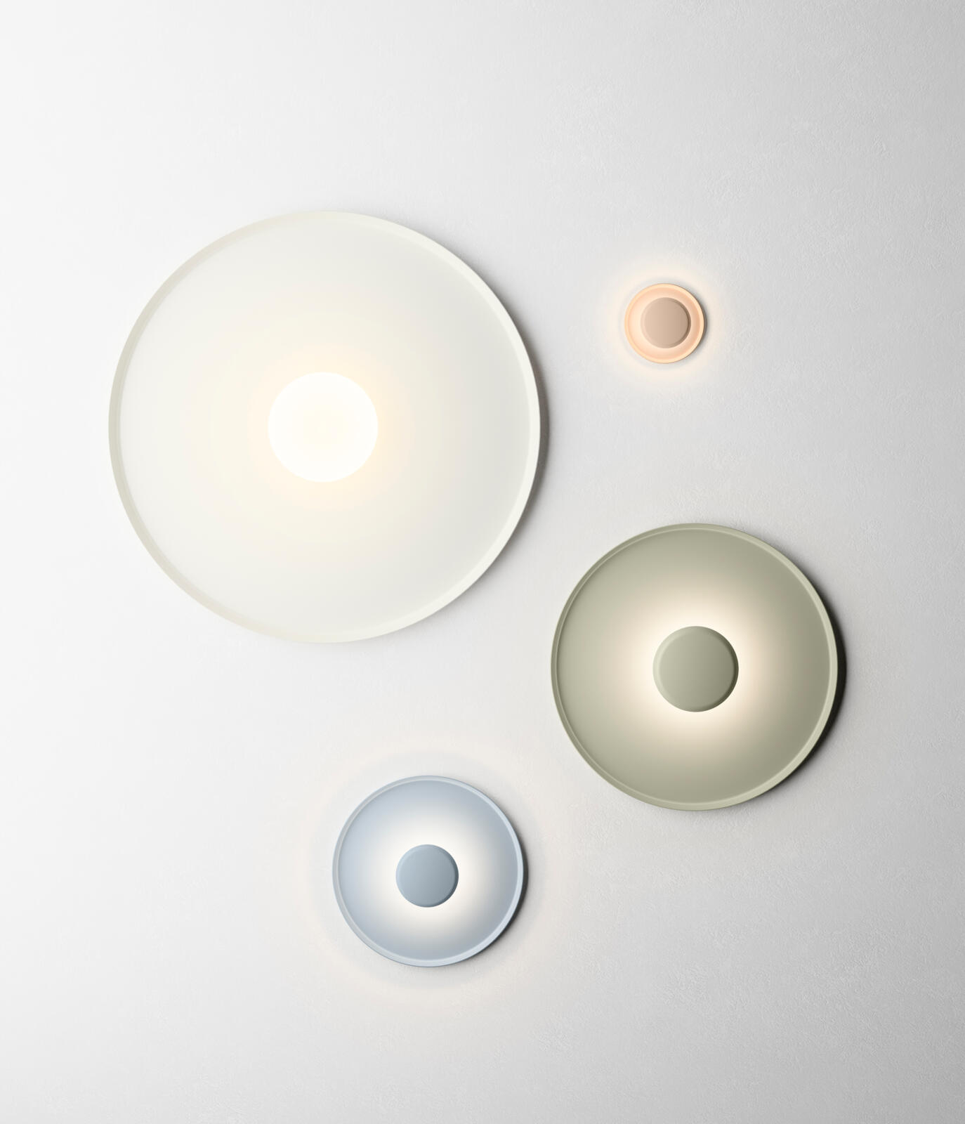 Top is a wall lamp that comes in a range of balanced colours that help to create very warm atmospheres. The Top collection offers indirect light that is confined within its diameter, forming a contrast with the outer part of the lamp.