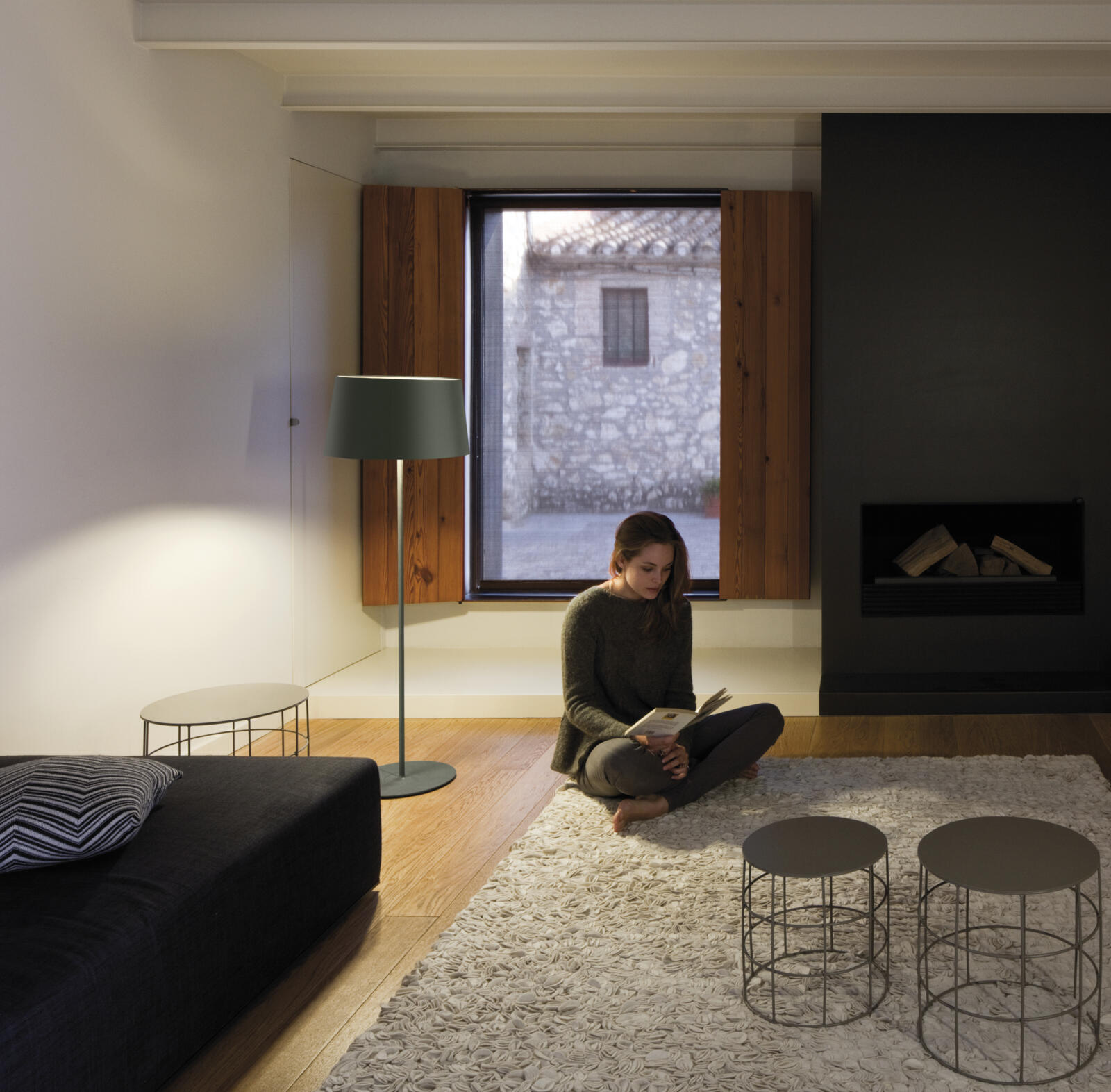 WARM is a floor lamp with an off-white screen mesh shade that is appealing, elegant and adaptable to any atmosphere. Designed by Ramos & Bassols.