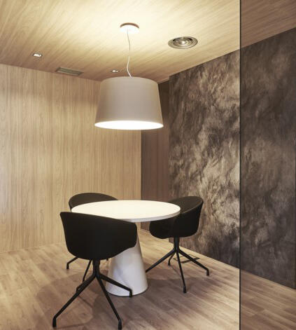 WARM is a tapered drum pendant with an opaque aluminium shade that is warm, elegant and adaptable to any atmosphere. Designed by Ramos & Bassols.